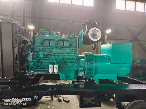 用戶簽訂的500KW康明斯移動發(fā)電機在車間進行生產(chǎn)